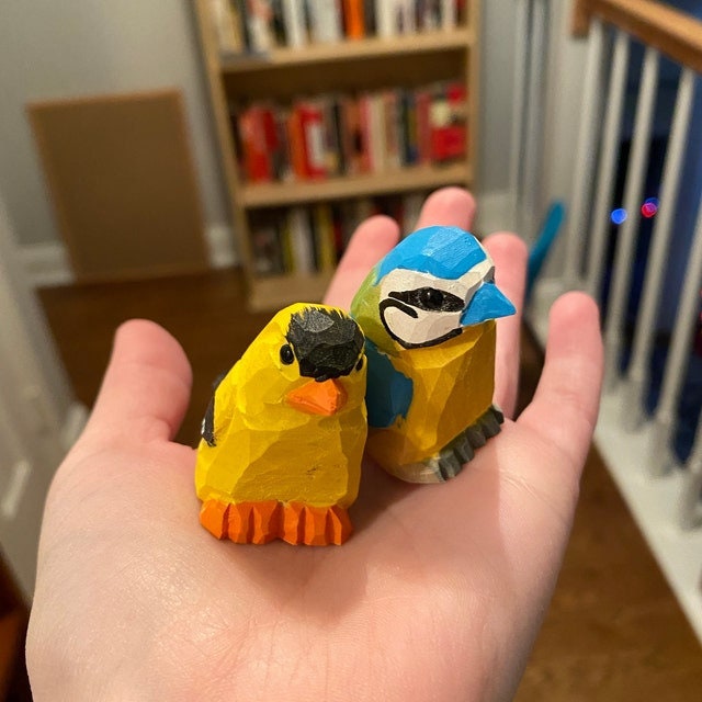 American Goldfinch Handmade Wood Figurine Miniature Yellow Bird Art Statue Carved Ornament Small Animals Collectible
