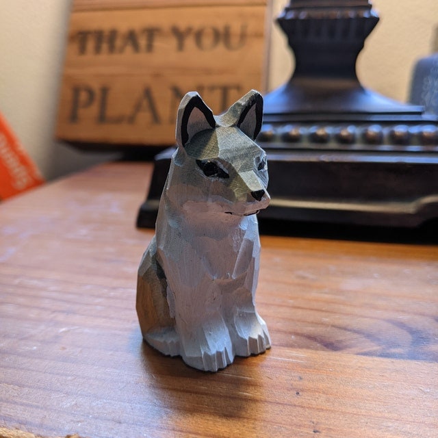 Gray Wolf Small Wood Art Figurine Handmade Statue Art Carving Sculpture Decor Small Animal