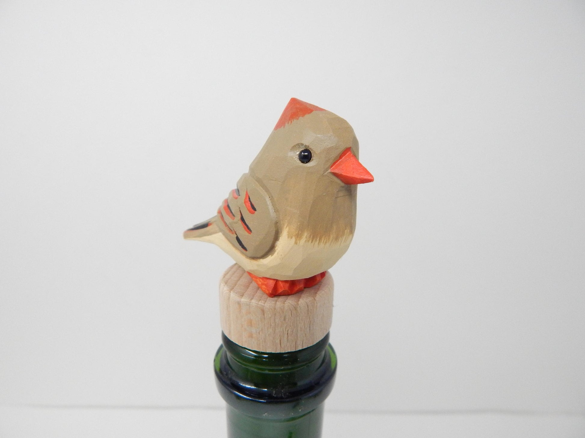 Handmade Female Cardinal Bird Wine Stopper β Rustic Reusable Bottle Plug