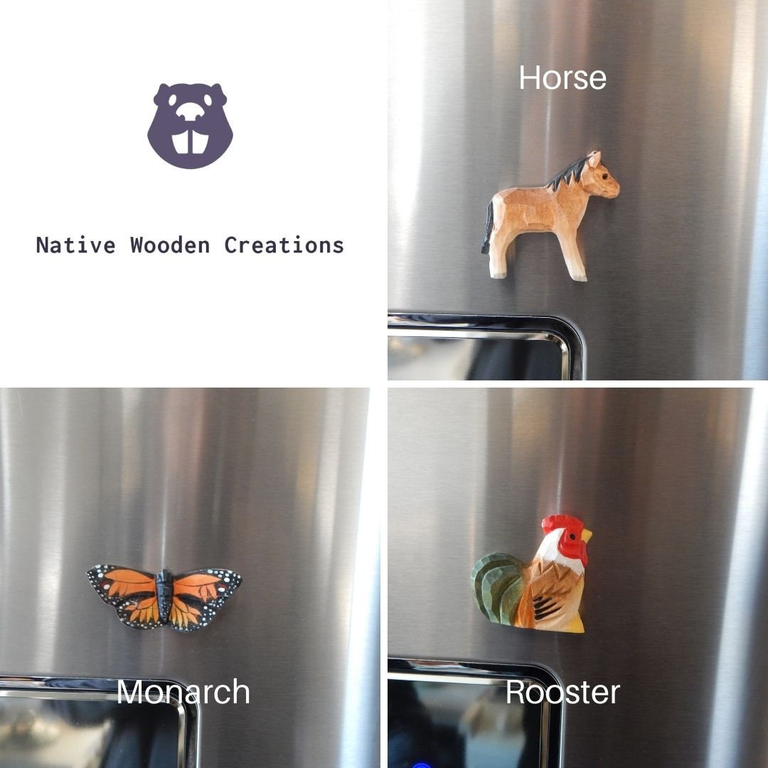 Wood Carved Animal Fridge Magnet Adult Kitchen Decor Cute Unique Custom Art Figurine Bird Duck Horse Butterfly